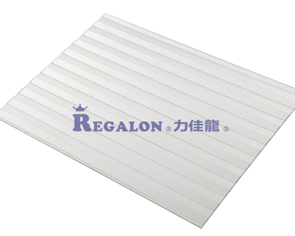 力佳龍?顆粒實心板是聚碳酸酯實心板中的一個分支,有磨砂紋,鉆石紋,棱鏡紋等裝飾性和功能性的紋理可供選擇。除具有聚碳酸酯實心板材優(yōu)異的性能之外,它特殊的紋理結(jié)構(gòu)使其在室內(nèi)裝修或隔斷,建筑采光,廣告照明等領(lǐng)域有著廣泛的應(yīng)用。